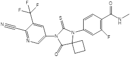 阿帕他胺為一種選擇性、競爭性的新型非甾體雄激素受體(AR)抑制劑,在AR 過表達的前列腺癌細胞中通過結(jié)合AR 抑制雄激素介導(dǎo)的基因轉(zhuǎn)錄來控制腫瘤細胞的增殖轉(zhuǎn)錄,用于治療轉(zhuǎn)移性內(nèi)分泌治療敏感性前列腺癌成年患者及有高危轉(zhuǎn)移風險的非轉(zhuǎn)移性去勢抵抗性前列腺癌成年患者。